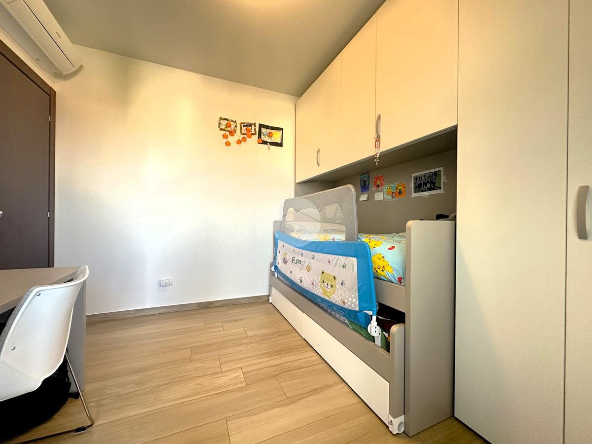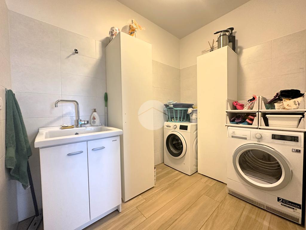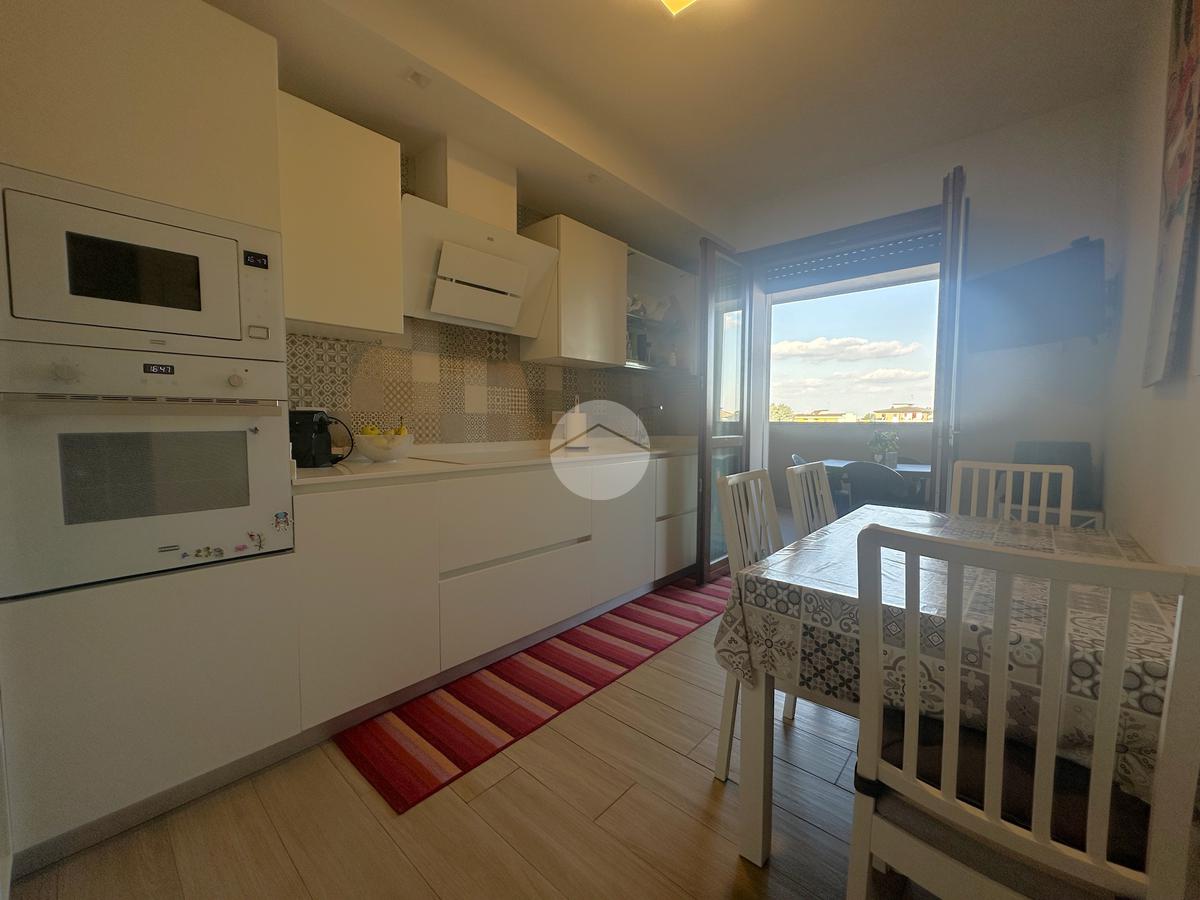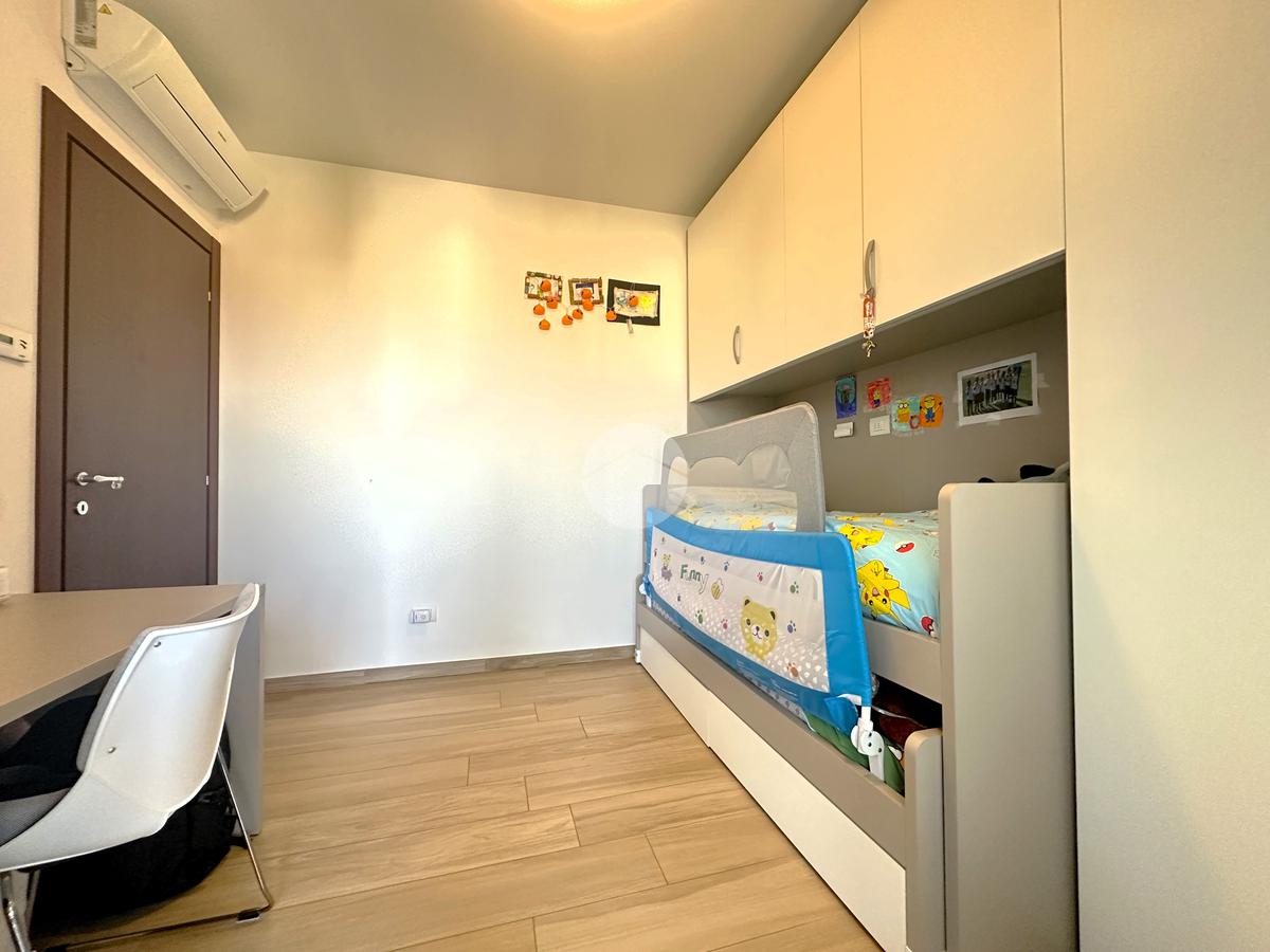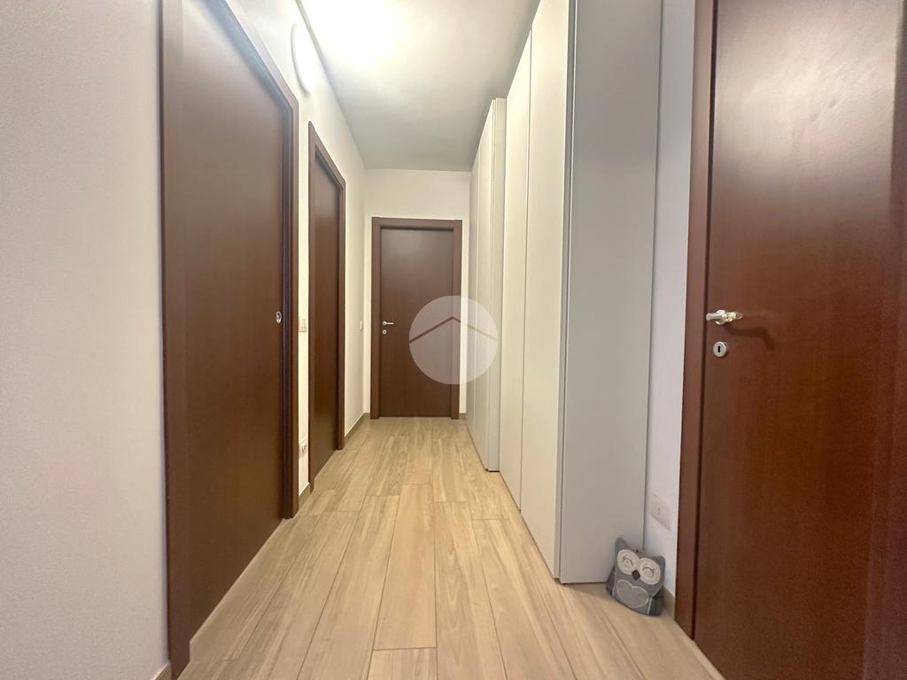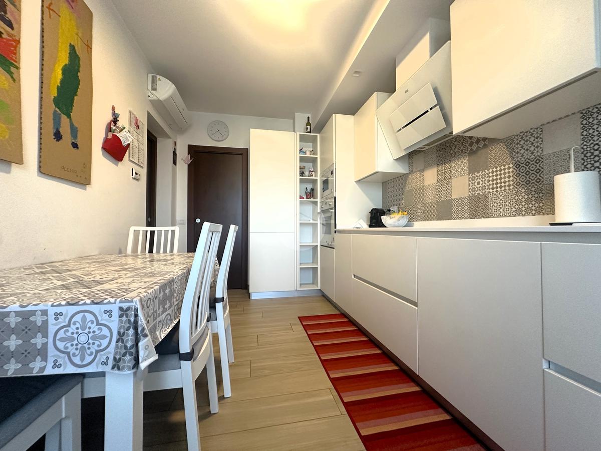 Corbetta: in prestigioso complesso di recentissima realizzazione, completamente privo di barriere architettoniche. In posizione strategica per poter raggiungere, anche a piedi, sia la fermata dell'autobus Magenta-Milano Molino Dorino che la Stazione Ferroviaria. Appartamento in Classe Energetica 'A4' con conseguente presenza di impiantistica e finiture di ultima generazione. Ubicato all'ultimo piano con luminosa e soleggiata doppia esposizione sud-est. Tramite il portoncino blindato d'ingresso, dotato di serratura modello europeo, si accede direttamente nella zona living; qui ci troviamo di fronte un soggiorno estremamente spazioso e godibile; dalla porta finestra ad anta scorrevole, si accede al primo terrazzo della casa. La cucina risulta facilmente abitabile ed ospita un arredo completo di tutti gli elettrodomestici e con diversi piani lavoro; la porta finestra consente l'accesso al secondo terrazzo della casa, il più grande ed il più facilmente arredabile da poter sfruttare per pranzi e cene all'aperto. Adiacente alla cucina è stato ricreato uno spazioso quanto utile locale lavanderia, pratico e funzionale. Il disimpegno, anch'esso sfruttato con arredi capienti e su misura, ci conduce al reparto notte; qui troviamo 2 camere da letto, una matrimoniale ed 1 cameretta, quest'ultima con uscita sul pratico terrazzo condiviso con la cucina. I 2 bagni presenti sono eccezionalmente entrambi finestrati e completi di piatti doccia e relativi box con tutti i sanitari sospesi. L'appartamento è stato completamente ultimato con finiture extra-capitolato, pavimentato in gres-porcellanato effetto parquet di moderna fattura e con relativi rivestimenti anch'essi di nuova concezione. L'abitazione è inoltre completa d'impianto d'aria condizionata con 3 split interni ed unità esterna oltre alla predisposizione per un impianto d'antifurto ed una cassaforte in dotazione. L'abitazione beneficia di riscaldamento a pavimento, con aggiunta di eleganti termoarredi silver nei bagni, il tutto gestito da caldaia condominiale ibrida con pompa di calore, con la presenza di un termostato ambiente in ogni singolo locale, così da avere una maggiore indipendenza ed autonomia nella gestione. L'edificio condominiale è completo d'impianto fotovoltaico per i consumi delle parti comuni. L'appartamento viene consegnato completo di arredamento, tutto di qualità eccelsa, con la presenza di tutti gli elettrodomestici ad incasso e con mobili di pregiata fattura e di recentissima realizzazione. Completano la soluzione una pratica cantina, un ampio box autorimessa e, per chi volesse, a parte, un secondo box di generose metrature.