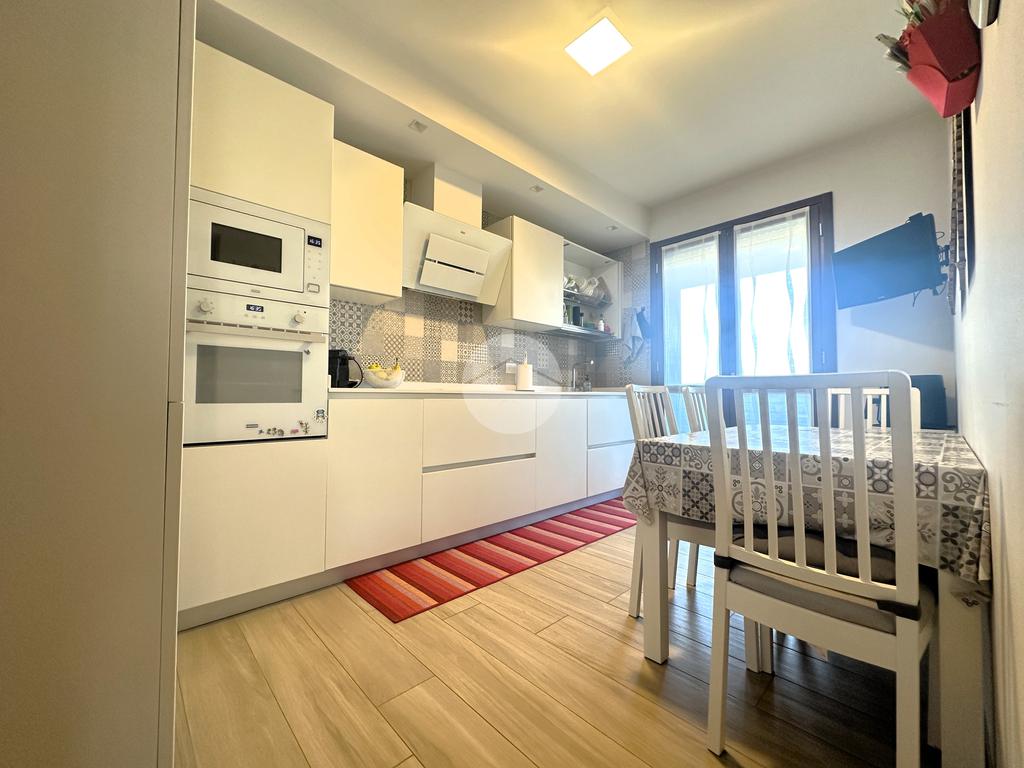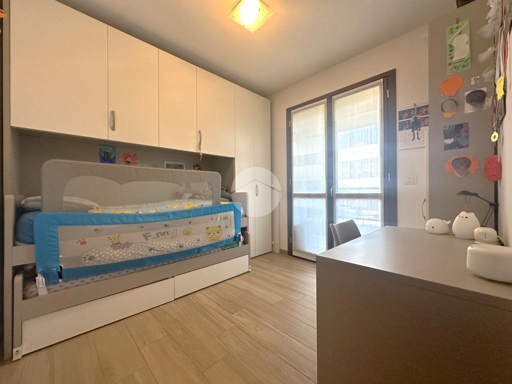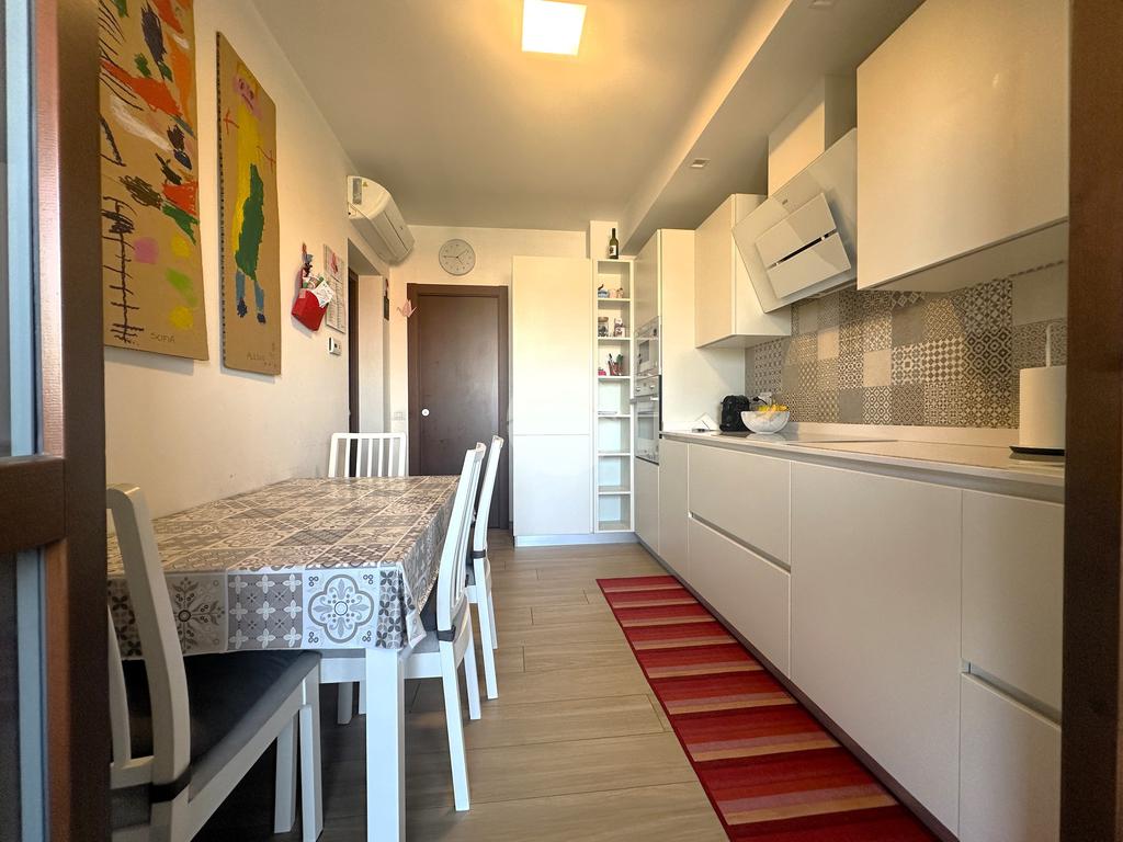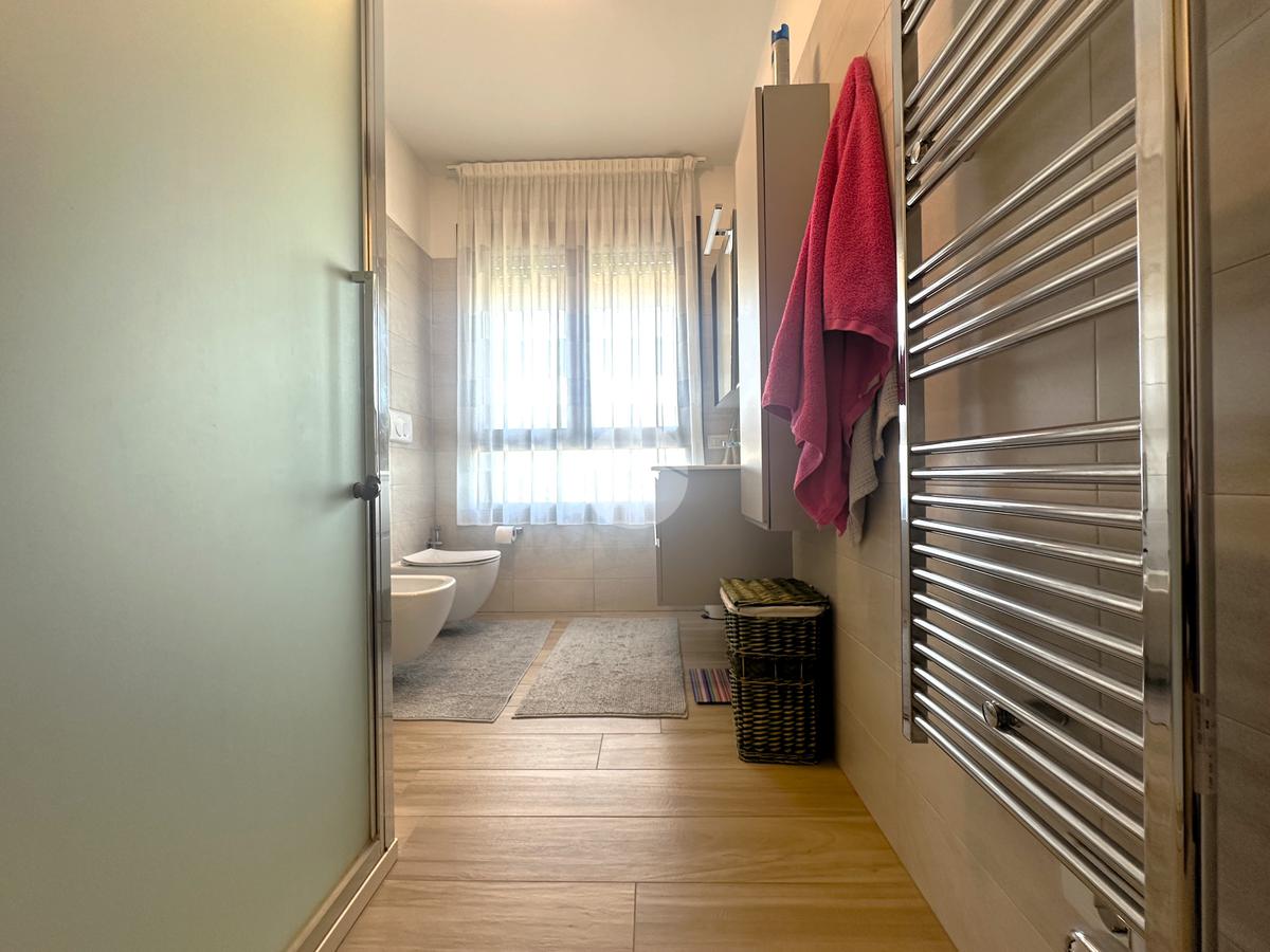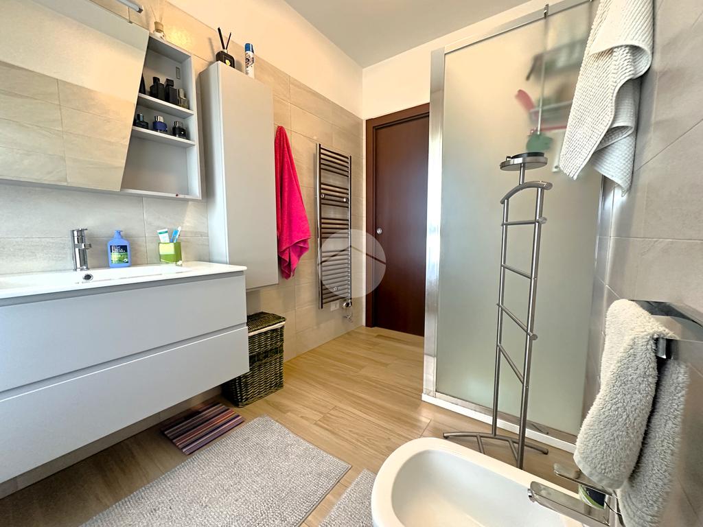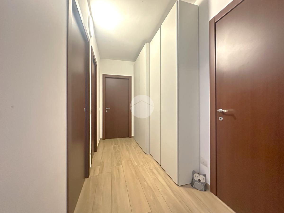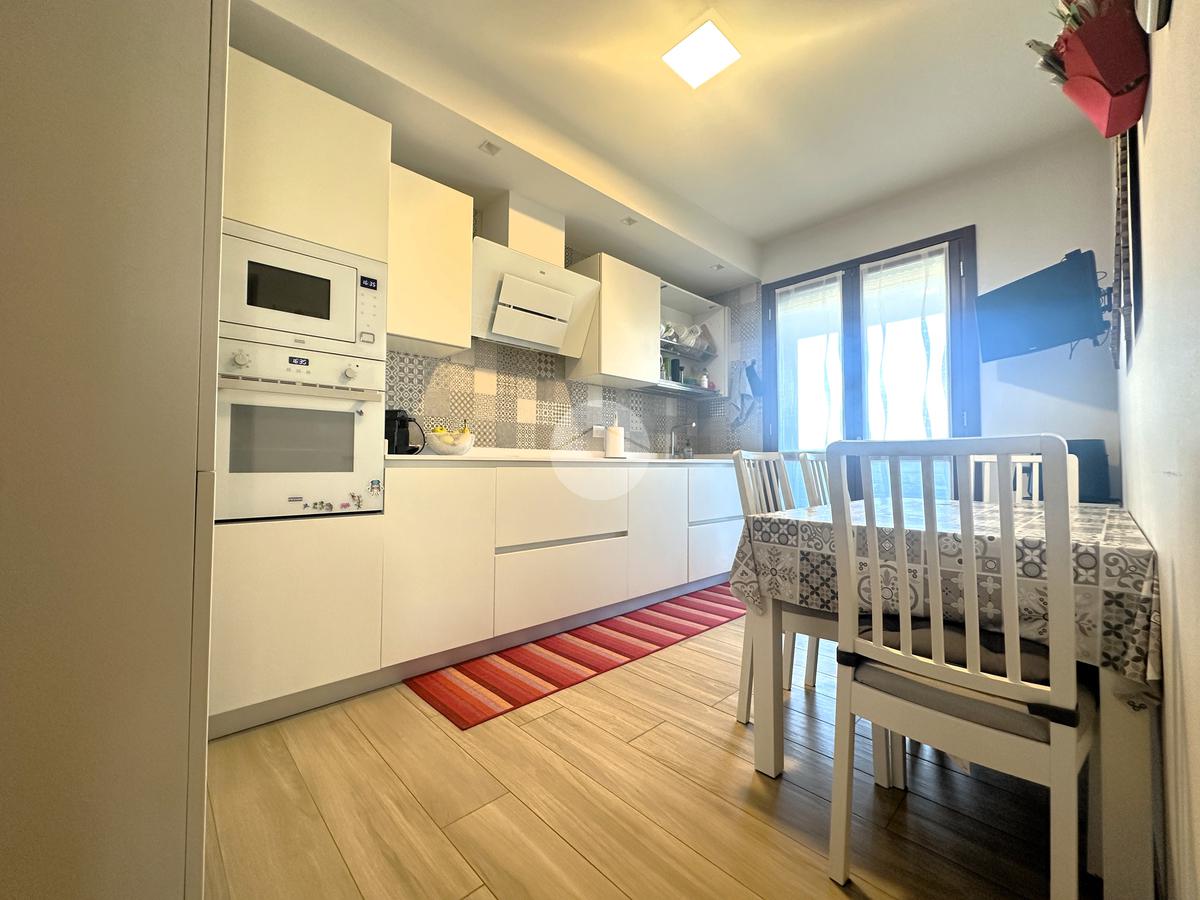 Corbetta: in prestigioso complesso di recentissima realizzazione, completamente privo di barriere architettoniche. In posizione strategica per poter raggiungere, anche a piedi, sia la fermata dell'autobus Magenta-Milano Molino Dorino che la Stazione Ferroviaria. Appartamento in Classe Energetica 'A4' con conseguente presenza di impiantistica e finiture di ultima generazione. Ubicato all'ultimo piano con luminosa e soleggiata doppia esposizione sud-est. Tramite il portoncino blindato d'ingresso, dotato di serratura modello europeo, si accede direttamente nella zona living; qui ci troviamo di fronte un soggiorno estremamente spazioso e godibile; dalla porta finestra ad anta scorrevole, si accede al primo terrazzo della casa. La cucina risulta facilmente abitabile ed ospita un arredo completo di tutti gli elettrodomestici e con diversi piani lavoro; la porta finestra consente l'accesso al secondo terrazzo della casa, il più grande ed il più facilmente arredabile da poter sfruttare per pranzi e cene all'aperto. Adiacente alla cucina è stato ricreato uno spazioso quanto utile locale lavanderia, pratico e funzionale. Il disimpegno, anch'esso sfruttato con arredi capienti e su misura, ci conduce al reparto notte; qui troviamo 2 camere da letto, una matrimoniale ed 1 cameretta, quest'ultima con uscita sul pratico terrazzo condiviso con la cucina. I 2 bagni presenti sono eccezionalmente entrambi finestrati e completi di piatti doccia e relativi box con tutti i sanitari sospesi. L'appartamento è stato completamente ultimato con finiture extra-capitolato, pavimentato in gres-porcellanato effetto parquet di moderna fattura e con relativi rivestimenti anch'essi di nuova concezione. L'abitazione è inoltre completa d'impianto d'aria condizionata con 3 split interni ed unità esterna oltre alla predisposizione per un impianto d'antifurto ed una cassaforte in dotazione. L'abitazione beneficia di riscaldamento a pavimento, con aggiunta di eleganti termoarredi silver nei bagni, il tutto gestito da caldaia condominiale ibrida con pompa di calore, con la presenza di un termostato ambiente in ogni singolo locale, così da avere una maggiore indipendenza ed autonomia nella gestione. L'edificio condominiale è completo d'impianto fotovoltaico per i consumi delle parti comuni. L'appartamento viene consegnato completo di arredamento, tutto di qualità eccelsa, con la presenza di tutti gli elettrodomestici ad incasso e con mobili di pregiata fattura e di recentissima realizzazione. Completano la soluzione una pratica cantina, un ampio box autorimessa e, per chi volesse, a parte, un secondo box di generose metrature.