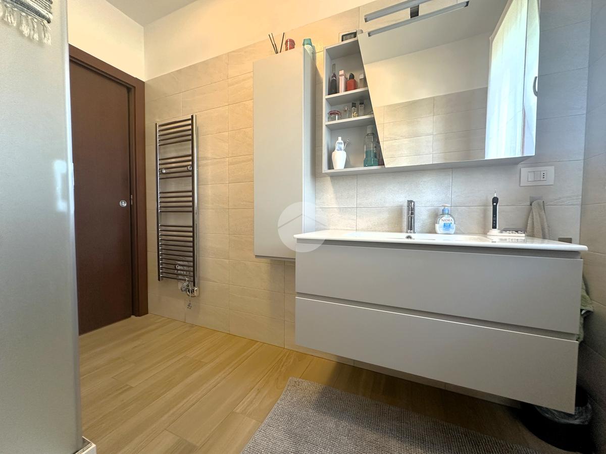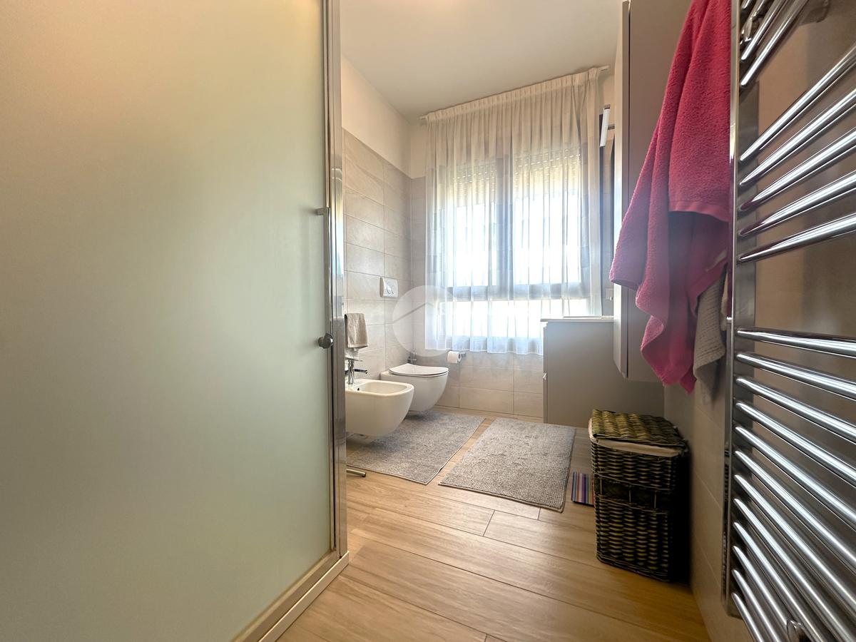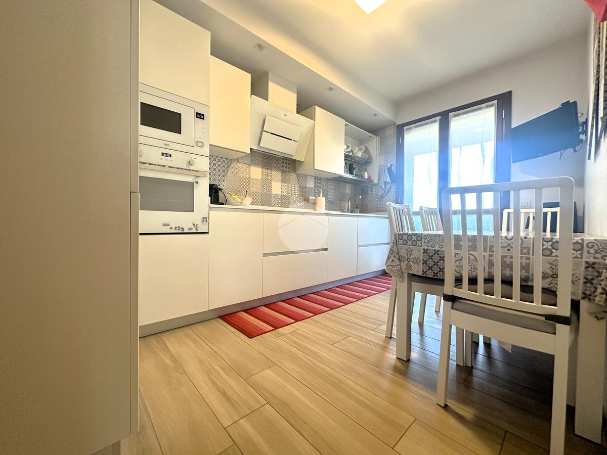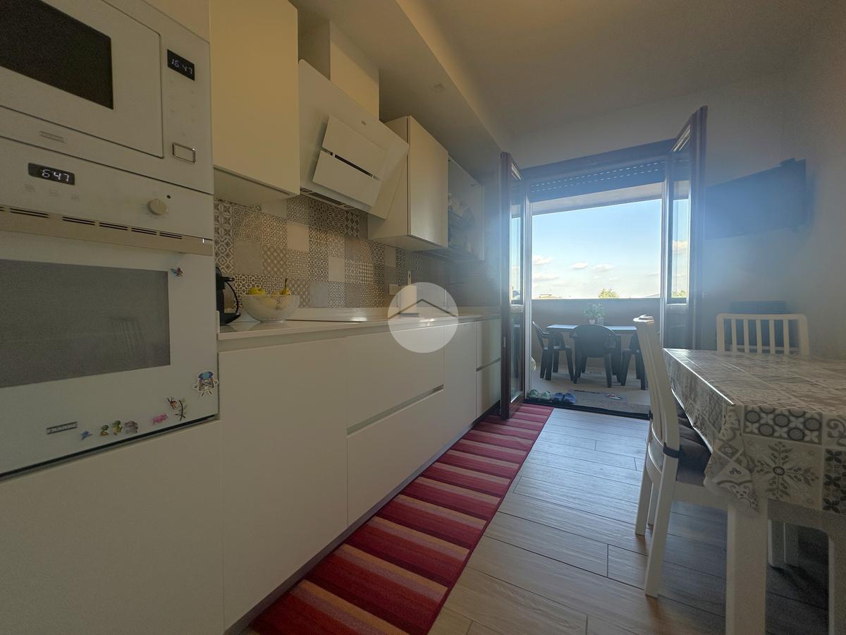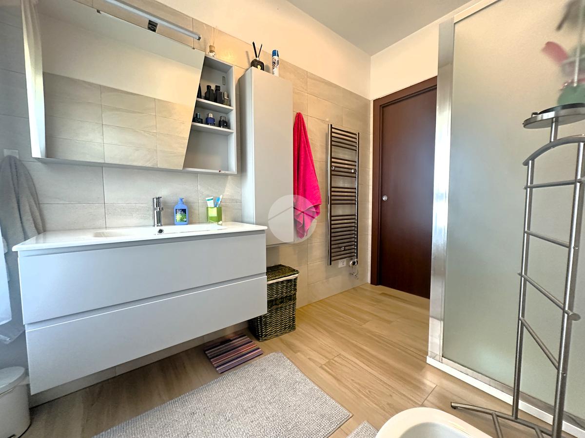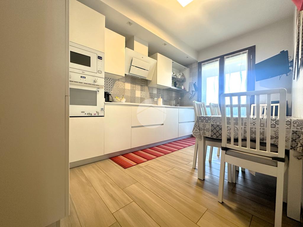 Corbetta: in prestigioso complesso di recentissima realizzazione, completamente privo di barriere architettoniche. In posizione strategica per poter raggiungere, anche a piedi, sia la fermata dell'autobus Magenta-Milano Molino Dorino che la Stazione Ferroviaria. Appartamento in Classe Energetica 'A4' con conseguente presenza di impiantistica e finiture di ultima generazione. Ubicato all'ultimo piano con luminosa e soleggiata doppia esposizione sud-est. Tramite il portoncino blindato d'ingresso, dotato di serratura modello europeo, si accede direttamente nella zona living; qui ci troviamo di fronte un soggiorno estremamente spazioso e godibile; dalla porta finestra ad anta scorrevole, si accede al primo terrazzo della casa. La cucina risulta facilmente abitabile ed ospita un arredo completo di tutti gli elettrodomestici e con diversi piani lavoro; la porta finestra consente l'accesso al secondo terrazzo della casa, il più grande ed il più facilmente arredabile da poter sfruttare per pranzi e cene all'aperto. Adiacente alla cucina è stato ricreato uno spazioso quanto utile locale lavanderia, pratico e funzionale. Il disimpegno, anch'esso sfruttato con arredi capienti e su misura, ci conduce al reparto notte; qui troviamo 2 camere da letto, una matrimoniale ed 1 cameretta, quest'ultima con uscita sul pratico terrazzo condiviso con la cucina. I 2 bagni presenti sono eccezionalmente entrambi finestrati e completi di piatti doccia e relativi box con tutti i sanitari sospesi. L'appartamento è stato completamente ultimato con finiture extra-capitolato, pavimentato in gres-porcellanato effetto parquet di moderna fattura e con relativi rivestimenti anch'essi di nuova concezione. L'abitazione è inoltre completa d'impianto d'aria condizionata con 3 split interni ed unità esterna oltre alla predisposizione per un impianto d'antifurto ed una cassaforte in dotazione. L'abitazione beneficia di riscaldamento a pavimento, con aggiunta di eleganti termoarredi silver nei bagni, il tutto gestito da caldaia condominiale ibrida con pompa di calore, con la presenza di un termostato ambiente in ogni singolo locale, così da avere una maggiore indipendenza ed autonomia nella gestione. L'edificio condominiale è completo d'impianto fotovoltaico per i consumi delle parti comuni. L'appartamento viene consegnato completo di arredamento, tutto di qualità eccelsa, con la presenza di tutti gli elettrodomestici ad incasso e con mobili di pregiata fattura e di recentissima realizzazione. Completano la soluzione una pratica cantina, un ampio box autorimessa e, per chi volesse, a parte, un secondo box di generose metrature.