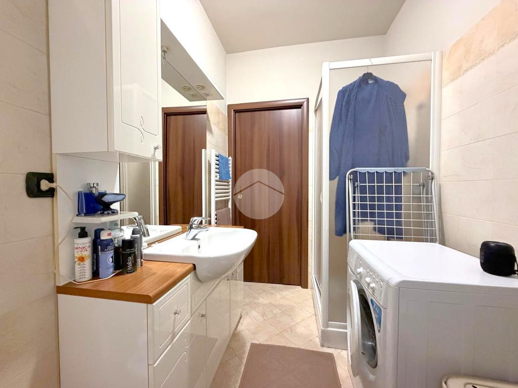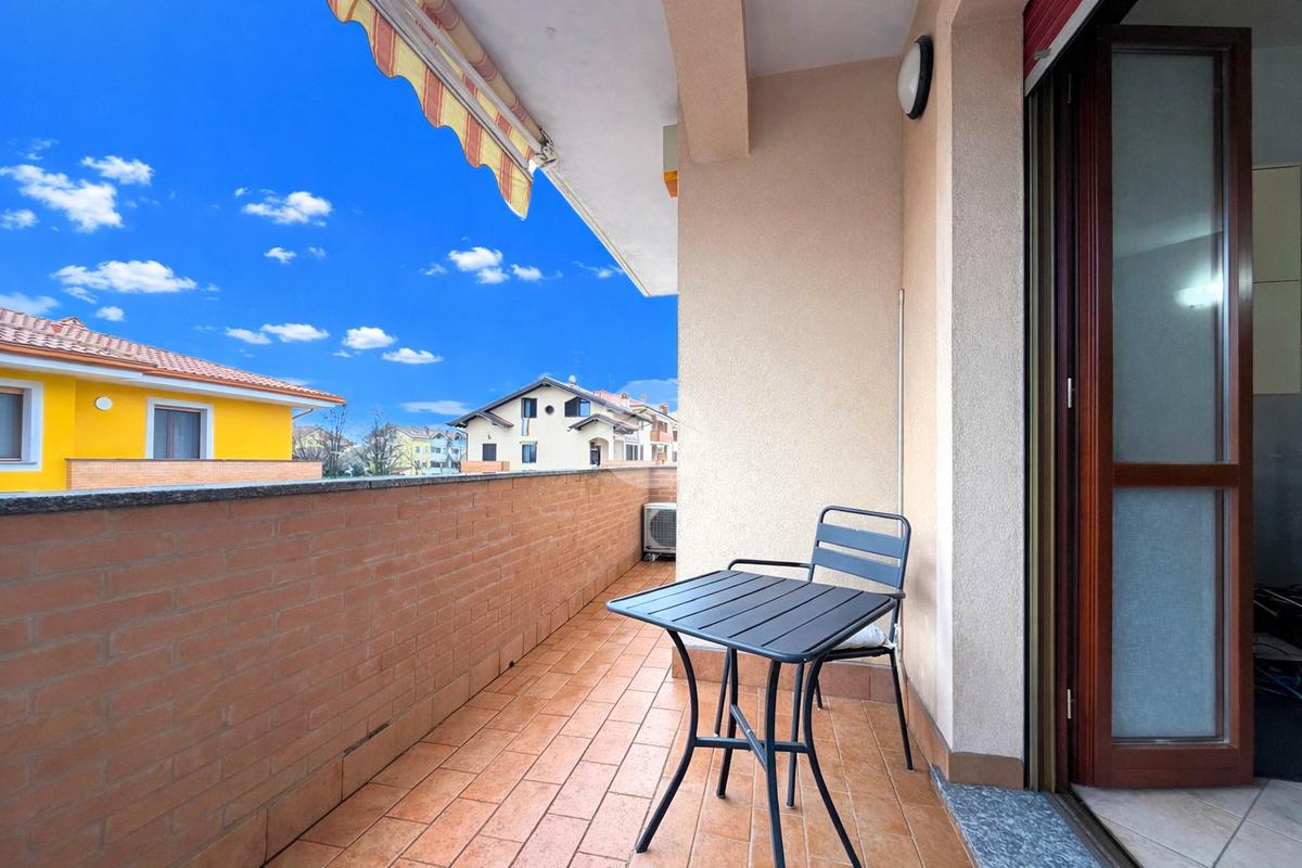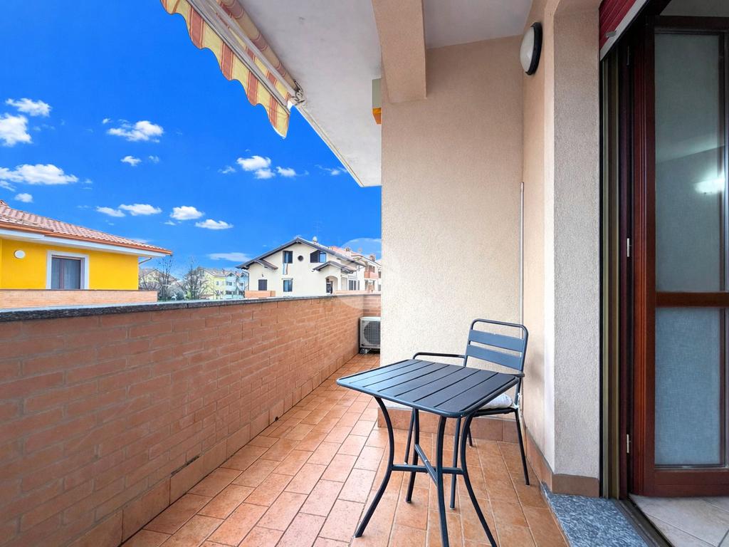 La zona living gode di un’ottima esposizione e di una luminosità naturale eccellente, grazie alla presenza di una finestra e di una portafinestra che conduce a un ampio terrazzo coperto, ideale per momenti di relax o convivialità. Il terrazzo è dotato di tenda da sole ed è impreziosito da balconi con eleganti mattoni a vista, dettaglio che conferisce ulteriore carattere all’abitazione.