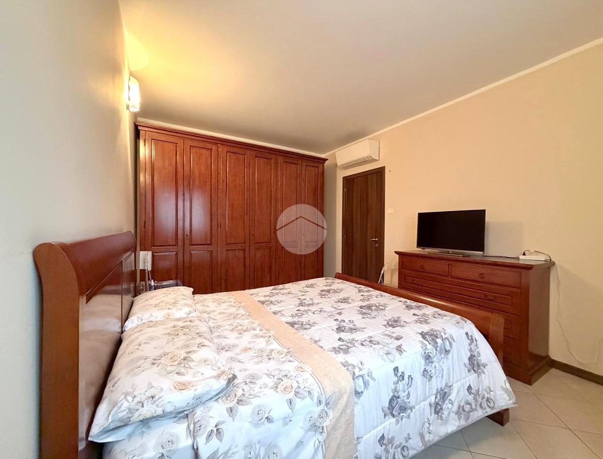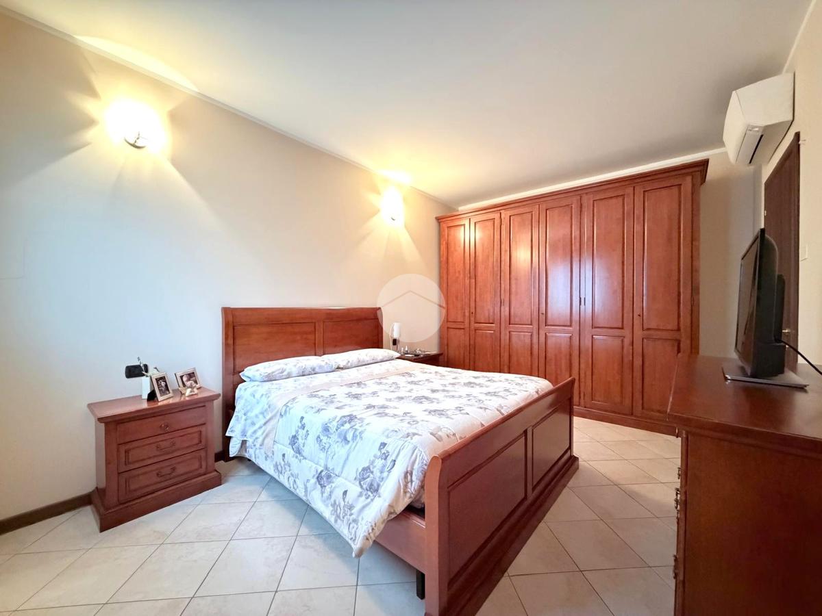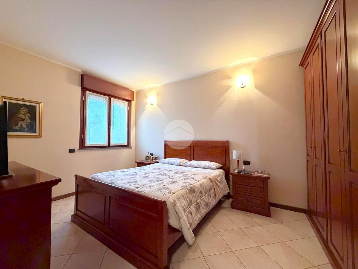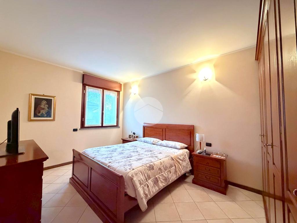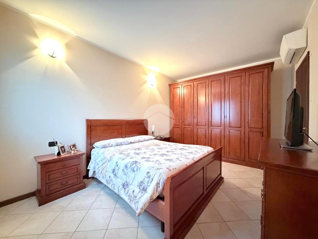 Un comodo disimpegno, attrezzato con armadio a muro, introduce alla zona notte. La camera matrimoniale si distingue per le dimensioni generose, perfette per accogliere arredi importanti senza rinunciare al comfort. Il bagno finestrato è completo di piatto doccia con box e apertura anche a vasistas.