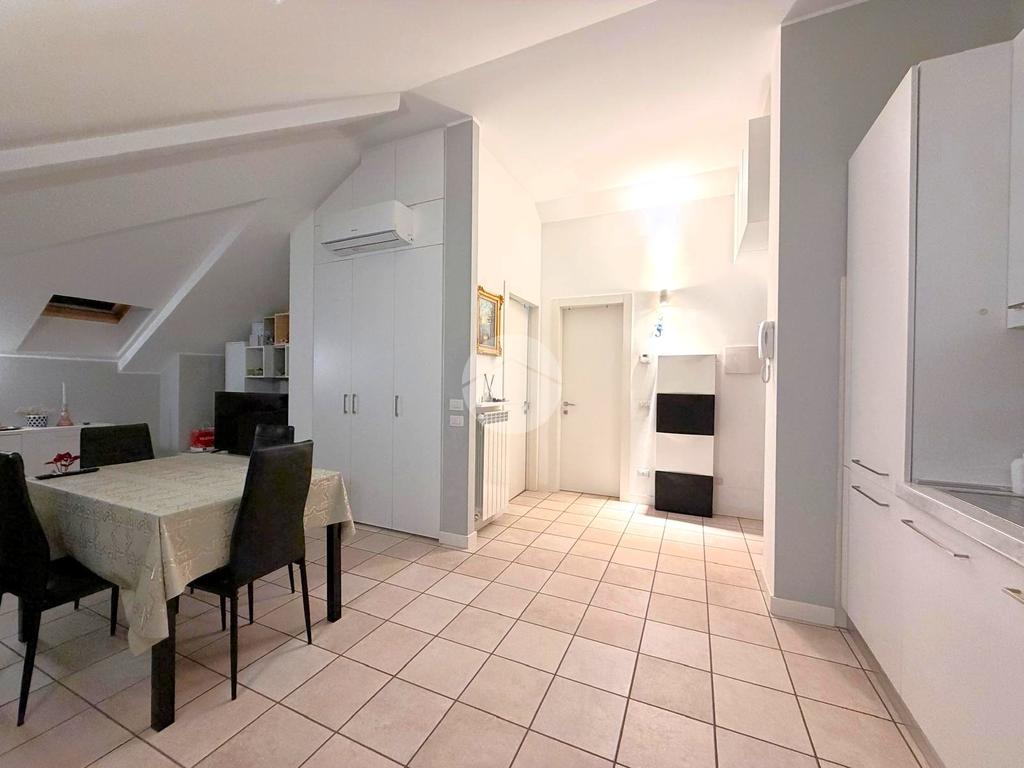 Santo Stefano Ticino: in pieno Centro Paese. In posizione strategica per raggiungere, anche a piedi, tutti i servizi di prima necessità: negozi, asili, scuole e, a poche centinaia di metri, la Stazione Ferroviaria. All'interno di un contesto condominiale di recente costruzione, appartamento mansardato, con soleggiata esposizione della zona giorno a Sud-Ovest. Tramite portoncino blindato si accede all'ingresso e subito dopo, alla zona living con relativa cucina a vista; la presenza di una porta finestra, con tapparella elettrica, consente l'accesso ad un balcone con ampia ed ariosa visuale. Inoltre 2 lucernari, con apertura automatizzata consentano un maggiore accesso di luce ed areazione. La cucina a vista è lineare e completa di tutti gli elettrodomestici ad incasso. Il disimpegno ci conduce sia alla camera da letto, confortevole ed accogliente oltre ad un bagno, accessoriato da piatto e box doccia; entrambi quest'ultimi locali beneficiano anch'essi di un pratico balcone, spazioso e funzionale. L'appartamento, oltre ad essere tenuto e manutenuto in perfette condizioni, viene consegnato completamente arredato con mobili recenti e di assoluta qualità ed impianto d'aria condizionata. Il riscaldamento è autonomo con caldaia e termostato privati; oltre all'utenza del gas, anche luce ed acqua hanno un contatore privato ed autonomo cosicché si possa avere bollette private per ognuna di esse e, di conseguenza, spese condominiali davvero esigue. Completa la soluzione una cantina, sempre utile e preziosa come ripostiglio o ricovero bici. L'immobile è perfetto per chi è alla ricerca di un ottimo investimento; viene venduto locato con regolare contratto 4+4 ad un canone di locazione davvero interessante.