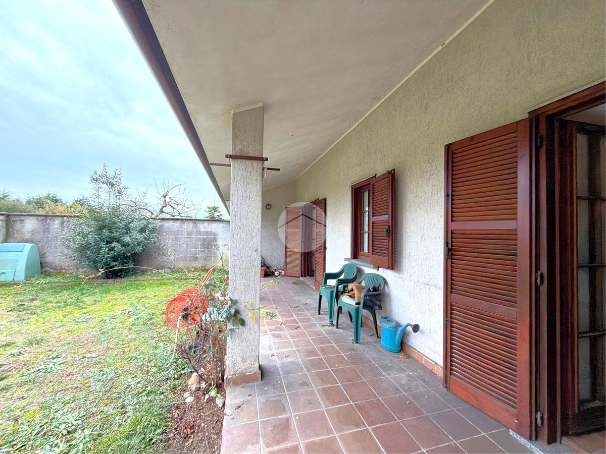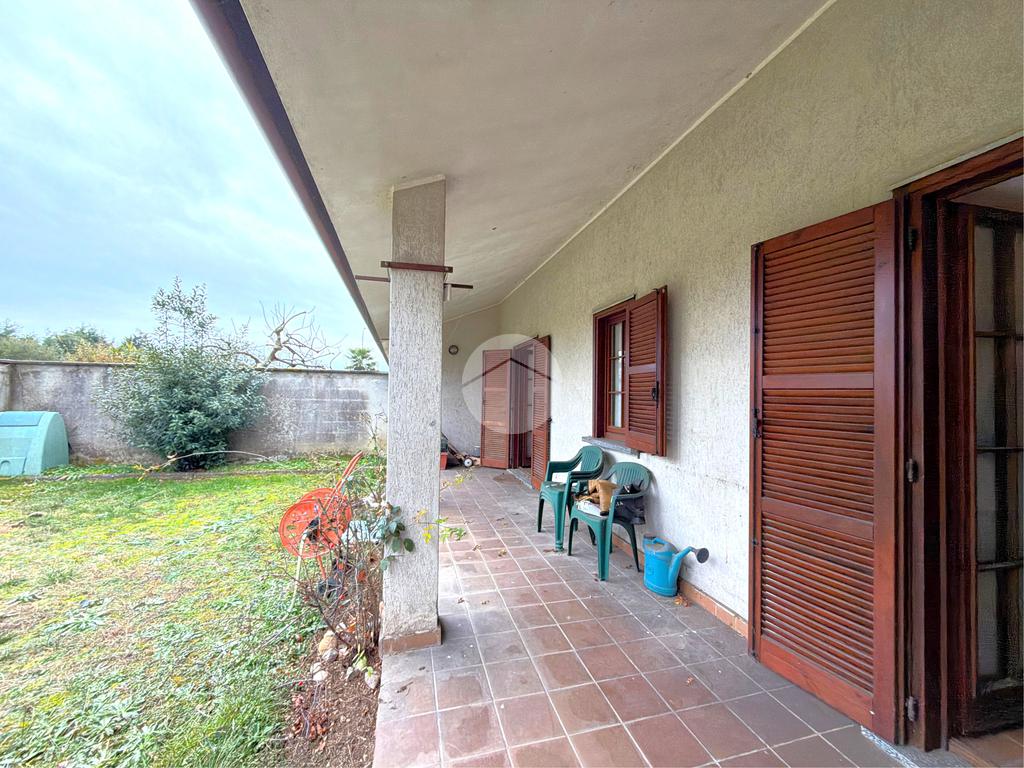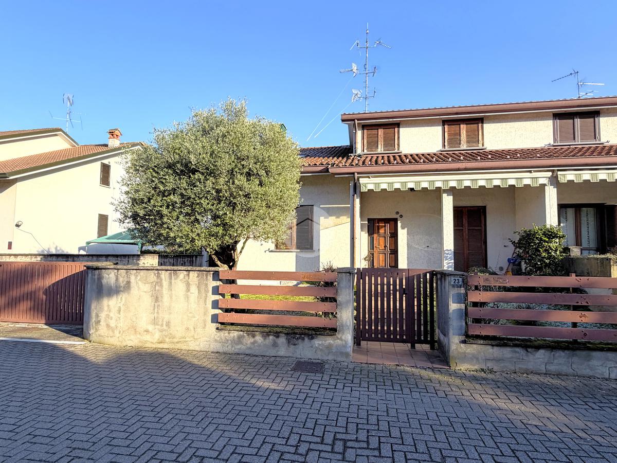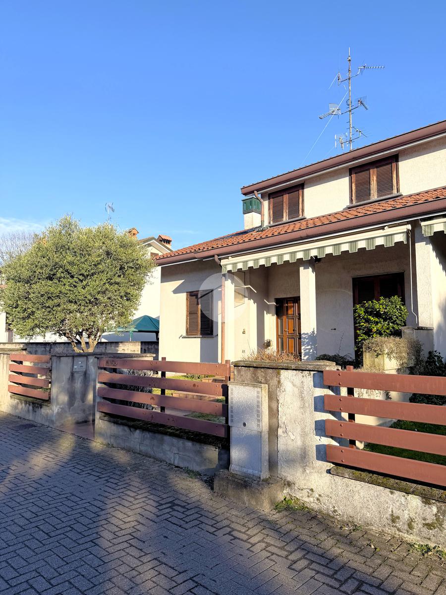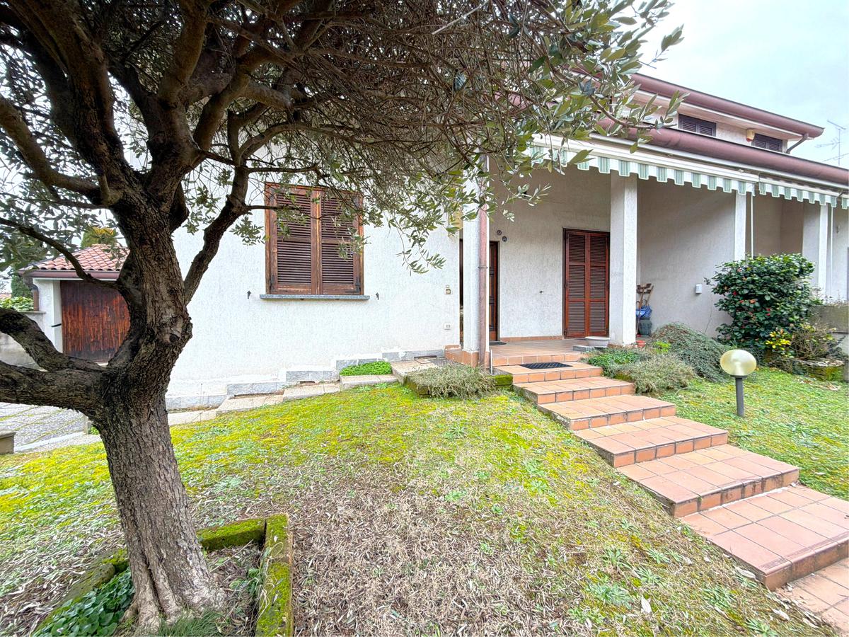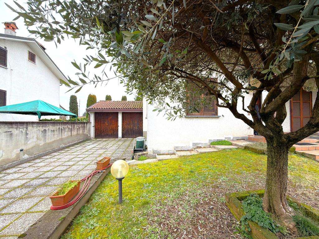 La proprietà è completata da un box autorimessa doppio in larghezza, con comodo accesso pedonale sul retro, e da un giardino pianeggiante e riservato, vero valore aggiunto dell’abitazione. Sono inoltre presenti spazi cortilizi e una curata area verde d’ingresso che valorizza l’accoglienza della villa.